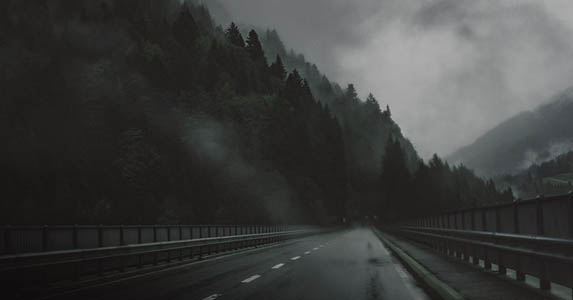 细雨如雾,远处山间有云飘过,风刮了起来,由小至大,狂风呼啸。